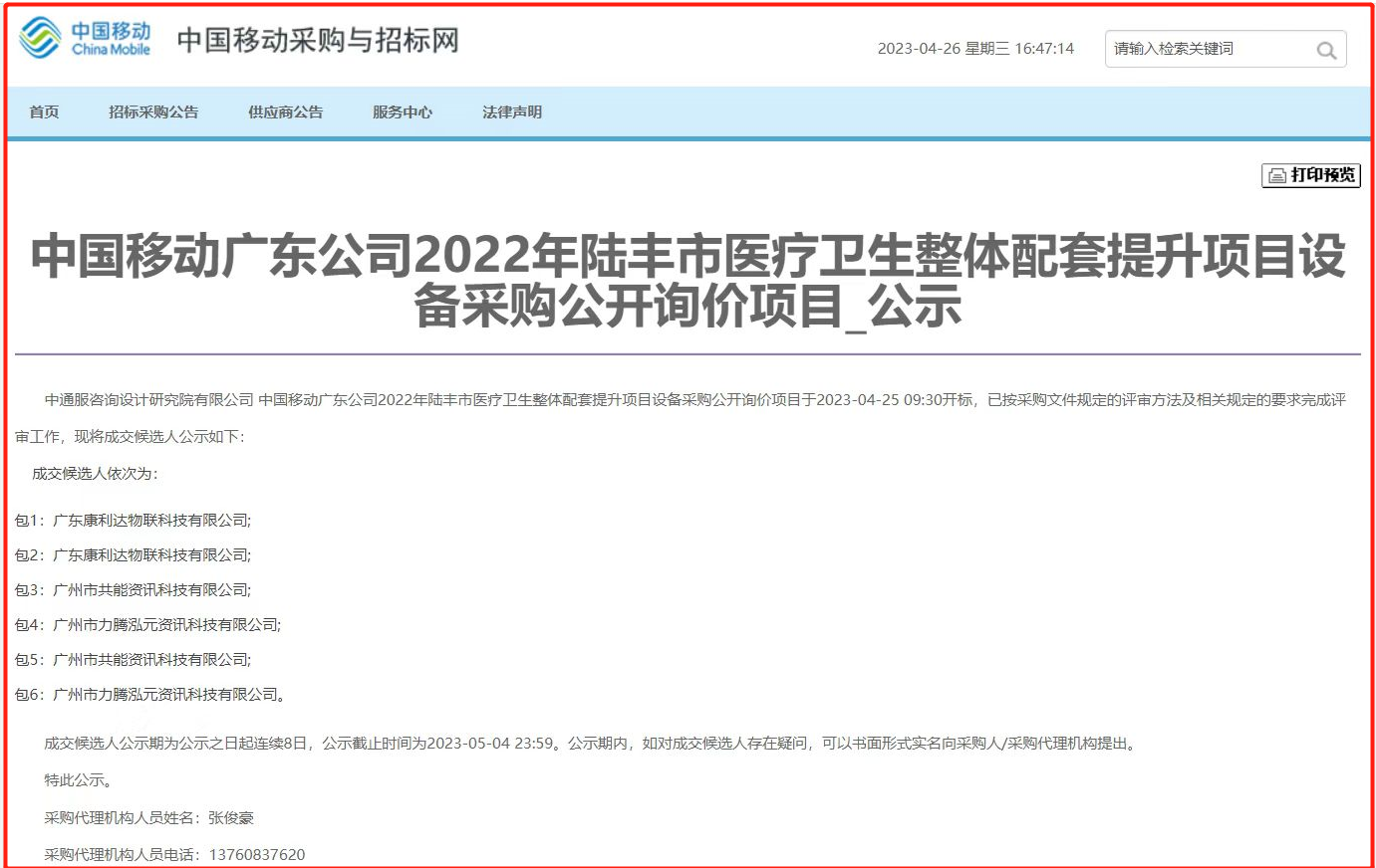 項目名稱:中國移動廣東公司2022年陸(lù)豐市醫療衛生整體配套提(tí)升項目設(shè)備采購(gòu)公開詢價項目。