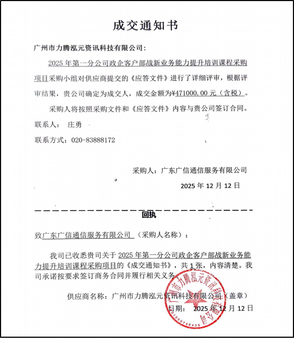 這份成交通(tōng)知書,是鼓(gǔ)勵,更是新征程的起(qǐ)點。我(wǒ)們(men)將以此為契,與客戶(hù)緊密協作,以優質的培訓服務助力能力提升,共同為戰新業務的發展注入強勁動力。未來,海角社区APP將繼續砥礪前行,以專業(yè)和誠(chéng)意,攜手客戶共創卓越!